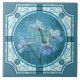 Pretty blue ceramic tile with painted flowers (blue iris) in a stained glass look. Use as a trivet or a pretty pop of colour in any room of the house.