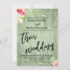 Painted Flowers Green Wood Casual Wedding Script Invitation