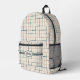 A roughly painted grid in pastel colours of teal, peach, and grey-green on a dark cream background creates a casual backpack that you will love!
