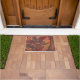 A welcome doormat with painted leaves in beautiful autumn colours of red, brown, yellow, orange, and cream.