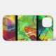 Alien like view of panes of painted glass in swirls of colours reminiscent of fire opal, vivid blue,green,yellow, red, orange and purple