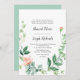 painted peach floral greenery wedding invitation