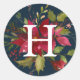 Painted Poinsettias | Monogram Holiday Classic Round Sticker