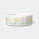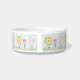 Cute pet bowl for food or water with painted primitive bright and cheery flowers against a blue sky in acrylic. Cute and simple wash outlined in black with a pointer brush.