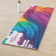 Vibrant Rainbow Paint Drip Yoga Mat with a personalized name template in a purple calligraphy font.
