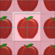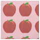 Painting of a whole ripe, red apple, with a green leaf, is tiled as a pattern on custom fabric. The background colour of pink can be customized.
