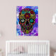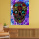 Painted Skull painted with Flowers and Other Colourful Designs. Started as traditional art and completed and given a faux metallic texture, and paint splotch background, using Adobe Photoshop CS2.