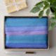 Add a handmade touch to your gift with custom tissue paper featuring a repeating pattern of painted violet, blue, and turquoise stripes. The paint strokes vary the darkness of the colours and reveal the texture of the watercolor paper it was originally painted on.