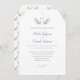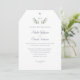 Painted watercolour olive branch foliage wedding invitation. On trend hand made look with watercolor foliage illustration elements. Olive branch leaves, script text, monogram/initials.