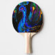 Bright blue body with colourful feathers against black creates a single funky bird.