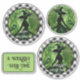 Painted Wickedly Good Witch Black and White Gingham Plaid Classic 4 sticker set - These stickers feature a green and black painting of a witch in an enchanted forest on top of a white and black gingham chequered plaid pattern. Designed for those who loves dark fantasy and spooky things or Halloween year round.