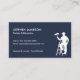A business card for the painting and decorating industry. With a navy blue background on the front and a silhouette of a painter on steps holding a paint roller, easily customize the white typography with your name and contact details. The reverse of the card has a plain white background where you can list out the services that you offer.