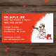 A humourous cartoon contractor. Cute guy with moustache, white overalls and painter’s cap at work with a gallon of bright vermillion red paint. This colourful painting company business card is sure to make an impression. Stand out with this fun design that your customers will want to keep and share with friends. This house painting business card is available in more colour choices, and on assorted paper types and with regular or modern rounded corners.