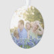Create a one of a kind family photograph Christmas tree ornament with a border of rich red, painterly foliage on a burgundy background framing your family's names and the year.