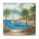 A painting by cPlo. This tropical setting on a sunny day displays a Hawaiian bungalow with a small boat skimming the waves.