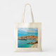 Painting of Dubrovnik fortress walls, beach and turquoise water. Famous Banje Beach with view of the Dubrovnik city walls and old town. Beautiful turquoise water and yellow send.