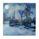 Painting of winter night in city park tile