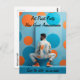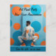 A man is sitting with his back to the camera against a blue background adorned with orange and blue circles. The text over the image suggests a celebration, specifically an "Art Paint Party" and a "New Home Announcement", accompanied by "Save the date".