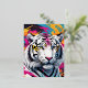 Paints explosion of colours white tigers man head foil holiday postcard