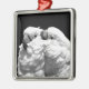 I was impressed by the quality and size of the ornament. Metal framing and design were perfect. Definitely recommend any of the metal framed ornaments. I ordered different ones all of the same quality and personalized professionally. Perfect No pictures as they were all gifts