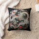 This round pillow features a pair of white Asian style dragons surrounded by flowers on a black background. This design was created with the help of AI.