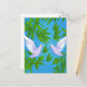Pair of White Doves, this design features a Pair of White Doves on a blue sky background and falling green leaves.