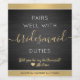 TO CHOOSE YOUR OWN BACKGROUND & TEXT COLORS, SEE INSTRUCTIONS BELOW. Get the wedding celebration started in style with elegant off-black, gold and white bridesmaid proposal wine bottle labels. Since they come in sets of six, an idea to add a different personalized name on each one is to hand write with a gold ink pen. All text is simple to customize or delete, including funny quote reading "Pairs well with bridesmaid duties." Design features a brushed dark grey background, stylish faux gold foil, modern minimalist typography, handwritten style script calligraphy, and customizable bride's name & message that reads "will you be my bridesmaid?" Please note that gold is printed colour, not metallic foil. These trendy unique fine wine accessories make a cute and funny drink idea for the wedding bridal party and pair well with bridesmaid proposal gift boxes, favours, cards and invitations. Cheers to happily ever after!