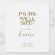 Minimalist "Pairs Well With A New Home" wine bottle label in simple white and gold colour with modern and elegant handwriting typography style. Customise with occasion, year, short message and sender/gifter's name. Change the background colour and/or text colour to suit your preference. Perfect for housewarming, moving house, or real estate gift.