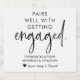 Modern typography engagement bottle labels. Design features typography script ''pairs well with getting engaged'', congratulations and couple name. Personalize further with your name. Perfect for engagement party gift.