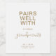 Minimalist "Pairs Well With Becoming Grandparents" wine bottle label in simple white and gold colour with modern and elegant handwriting typography style. Customise with occasion, year, short message and sender/gifter's name. Change the background colour and/or text colour to suit your preference. Perfect for congratulating new grandparents.