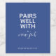 Minimalist "Pairs Well With A New Job" wine bottle label in simple blue and white colour with modern and elegant typography style. All text is customisable. Change the background colour and/or text colour to suit your preference. Perfect gift for congratulating a new job.