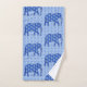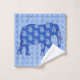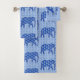 Towel set in a Mixed media digital graphic of an elephant against an arabesque tiled background - cobalt blue elephant with a white, lacy, paisley pattern