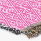 Mixed media digital graphic of an elephant against an arabesque tiled background - paisley pattern in shades of deep to light fuchsia pink against a pale ice pink background