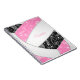 This cute volleyball themed notebook features the realistic image of an abstractly oversized volleyball that has pink, black and white panels with delicate hand-drawn doodle flowers, feathers and paislies in white patterned on the volleyball's pink and black panels - customize with the athlete's name - by katz_d_zynes