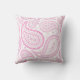 A throw pillow built with a paisley pattern, hot pink on white. You can customize the white background among other options.