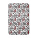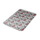 Ornate paisley pattern in black, white and shades of grey / grey, accented with deep red, on a white background bath mat