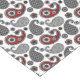 Ornate paisley pattern in black, white and shades of grey / grey, accented with deep red, on a white background