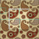 Ornate paisley pattern in shades of warm brown, rust and beige, accented with chocolate brown, on a caramel tan background