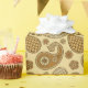 Ornate paisley pattern in shades of warm brown, rust and beige, accented with chocolate brown, on a caramel tan background