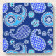Ornate paisley pattern in shades of deep blue and turquoise, accented with white, on a cobalt blue background
