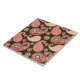 Ornate paisley pattern in shades of light to deep coral pink, accented with white, on a dark chocolate brown background
