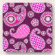 Ornate paisley pattern in shades of fuchsia pink and orchid, accented with white, on a deep amethyst purple background
