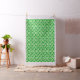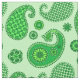 Fabric in an ornate paisley pattern in shades of chartreuse to deep emerald green on a pastel lime green background
