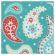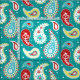 Cute and playful hand drawn paisley floral pattern in vibrant turquoise teal blue, red and light yellow.