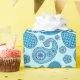Ornate paisley pattern in shades of light sky blue to deep cobalt blue on a soft aqua background