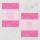 Paisley swirls and flowers in bright pink make a gorgeous pattern for this wedding reception card. Customized text prints against a light panel accented by borders that echo the background pattern. A bold reception card for any bride that wants to make a statement. Available in alternate colours with matching products.