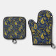 Paisley Yellow Blue Pattern Oven Mitt & Pot Holder Set