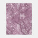 This unique volleyball themed fleece blanket for her with a distressed look, monochromatic dusty pink / plum colour theme features the outline image of a simple, abstractly oversized volleyball that covers the entire blanket - a doodle pattern of paislies, flowers and feathers in white covers all but one of the volleyball's panels - personalize with the athlete's name and monogram, varsity letter or jersey number - by katz_d_zynes
