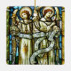 Image en verre tendu de deux anges portant le message "Paix sur terre et bonne volonté aux hommes, gloire à Dieu au plus haut"