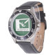 My husband loves the watch, he likes the dial, the graphics, the band, and it keeps perfect time.